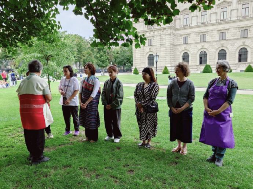 ▲考察團於維也納世界博物館草地進行祈福,向祖靈報告此次前來調研織品任務。(圖/新北市政府原民局提供)