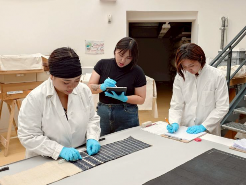 ▲考察團於維也納世界博物館內進行藏品測量,新北市原民局長Siku Yaway 林瑋茜也共同進入庫房參與調研工作(右1)。(圖/新北市政府原民局提供)