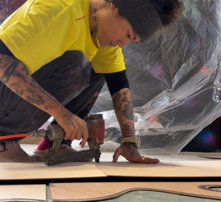 ▲藝術家蔣沛珊 Yabun Yuma製作《獵人的山林奇遇》燈飾工作照。